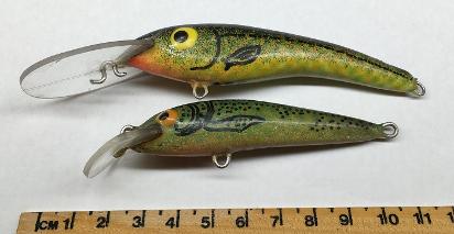 Another of the Far North Queensland pioneers who was making minnow style lures that were made in at least two sizes. There is a 'V' where the bib meets the body which may assist with identification. There are number of different models and paint jobs are simple but effective.