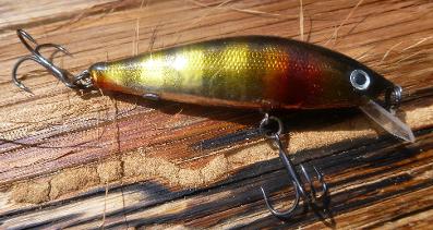Reverse - BL 55's, depth 3-4 metres. Action Narrow-sway. Nuggety little lure 30mm body length and 'heavy' for its size.
