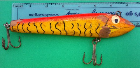 Made in Cairns in the early 1980's - these lures are obscure. A photo was shown by Barry Cross, aka 'Captain Cranky' on the Lure Lovers forum. The lure shown opposite is from another collection.