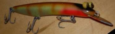 Little known lures that were available and designed for bass, cod and yellowbelly. Presented on a a black and white card where the white portion is in the shape of a coffin. Lure came with two style of bib - a rounded or squarish bib that seemed to dive deeper than the suggested 15ft range but was less stable at higher speeds than the round bib versions.