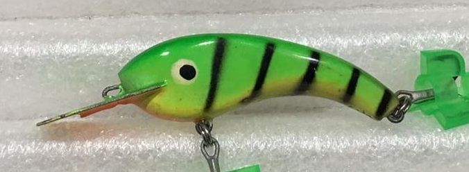 Below is an early deep diving 'Stinger' with the curved bib. Never many made with this bib - estimated at about 20 in total which makes this another of the rarer Eddy Lures for the collector