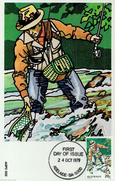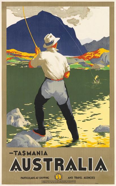 This page is dedicated to old tourist guides, government promotional material, posters, post cards and Australian stamps that involve anything to do with Australian fishing. Some of the artwork in these posters is spectacular and Tasmania was at the forefront of promoting its trout and outdoor lifestyle from early on.